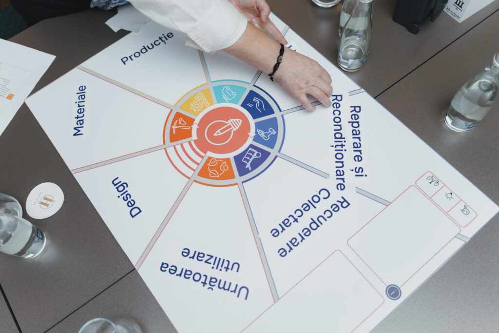 Al doilea workshop s-a concentrat pe modelul REUSE – de la reparare și recondiționare până la servicii bazate pe prelungirea duratei de viață a produselor. Participanții au identificat oportunități reale de afaceri în lanțurile valorice din textile, ambalaje și echipamente.